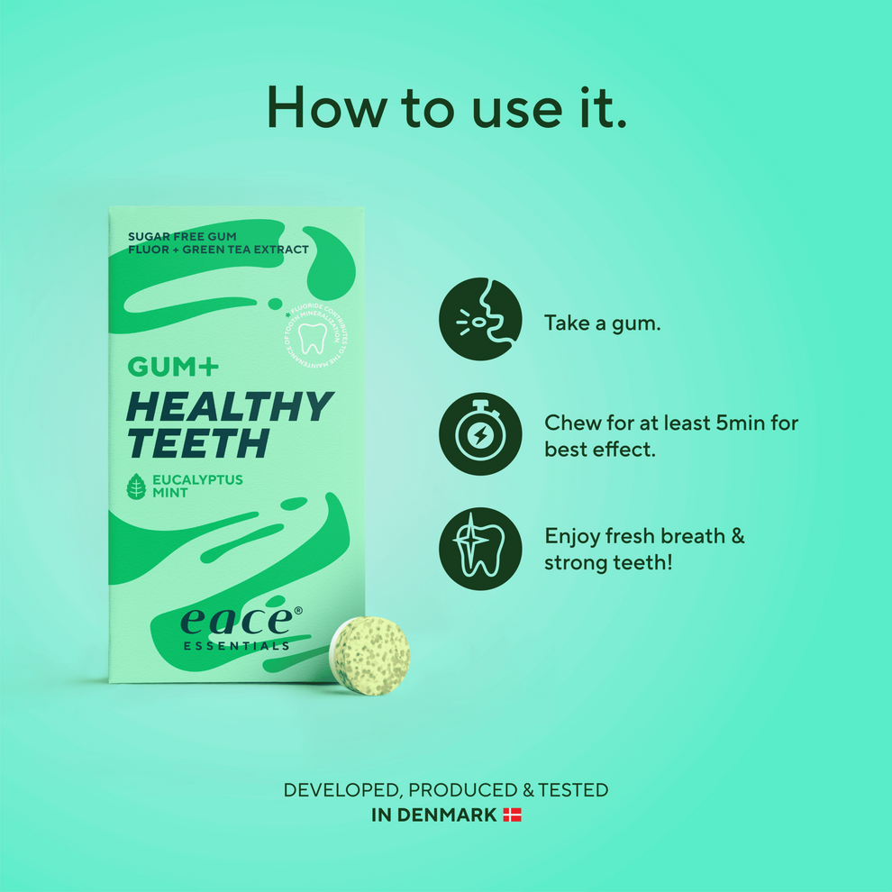 Dette sukkerfrie tyggegummi fra Eace indeholder fluorid og grøn teekstrakt, som understøtter din tandhygiejne på en naturlig måde. Fremstillet i Danmark med fokus på funktionalitet og sundhed giver det dig en praktisk løsning til daglig mundhygiejne.