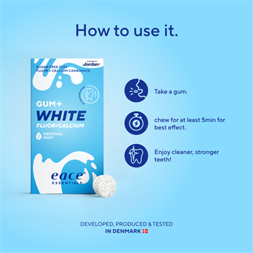 Dette sukkerfri tyggegummi fra Jordan indeholder fluor og calciumkarbonat, som hjælper med at styrke tandemaljen og understøtte mundhygiejnen. Udviklet, produceret og testet i Danmark giver det en frisk smag af mentholmint, der passer til den daglige rutine.