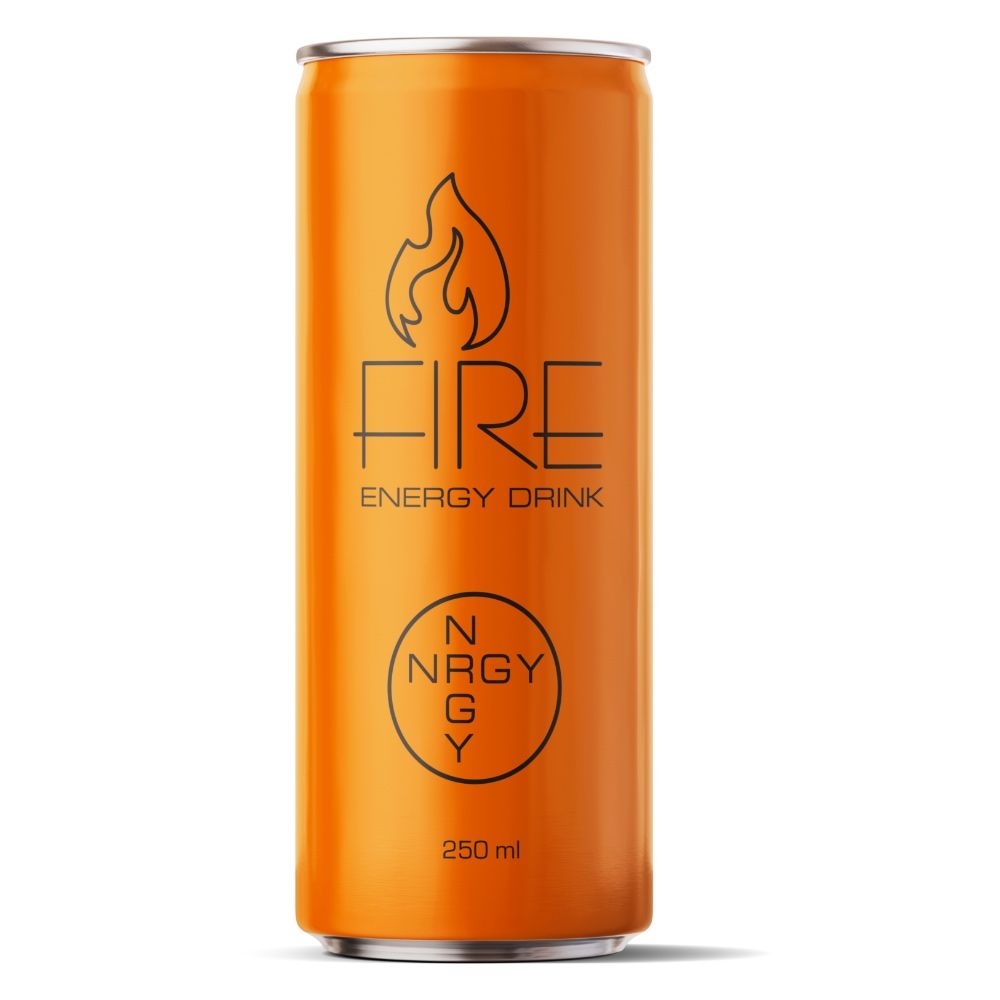 Fire Energy Drink indeholder koffein, B-vitaminer, taurin, glucuronolacton, inositol, stabilisator (E414) og farvestoffer. Opbevares tørt, køligt og mørkt. Den kommer i en sort dåse med orange flammegrafik, hvor FIRE ENERGY DRINK og ZERO er trykt på.