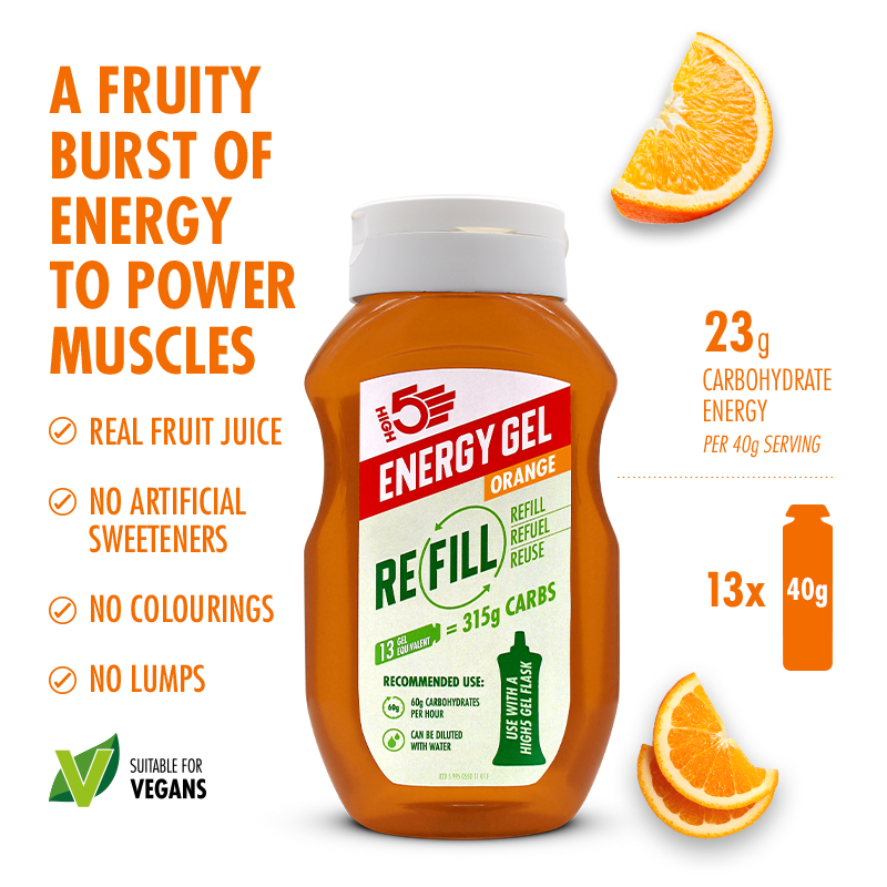 - 550 g energigel med appelsinsmag til genopfyldning af flaske
