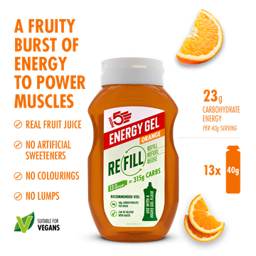 Denne 550 g refill giver dig mulighed for at fylde din genanvendelige gelflaske op med energi til dine træningspas. Flasken indeholder over 13 typiske 40 g portioner og kan opbevares i køleskabet i op til 6 uger efter åbning, hvilket giver dig fleksibilitet i brugen.