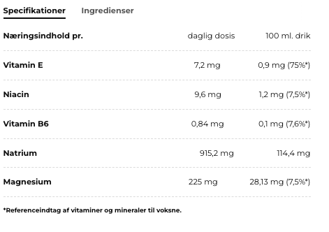 Disse elektrolyttabletter understøtter din væskebalance under træning og udholdenhedssport. Hver tablet indeholder vitamin E, niacin, vitamin B6, magnesium og natrium – næringsstoffer, der bidrager til kroppens normale funktioner. Magnesium hjælper med at opretholde elektrolytbalancen og mindsker følelsen af træthed, hvilket kan være en fordel, når du presser dig selv fysisk.