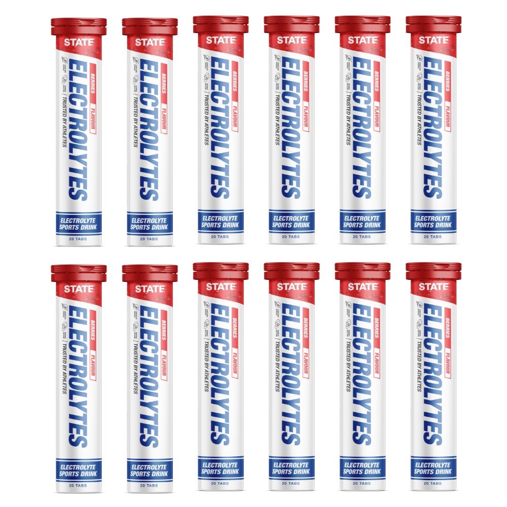 STATE Electrolytes er udviklet til at støtte din væskebalance under fysisk aktivitet. Hver tablet indeholder natrium, kalium og magnesium, som hjælper med at opretholde kroppens væskebalance. Vitamin B6 og B12 understøtter dit naturlige energistofskifte, så du kan fortsætte med din træning.